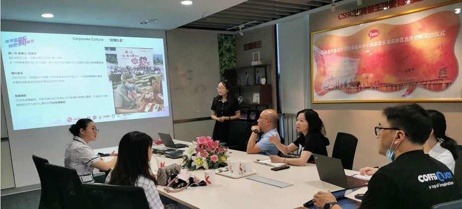 接下来,主管苏晓在会客厅对百胜中国的发展历程、运营现状、CSSC、实习岗位、培训体系和企业文化等内容进行讲解。截止目前,CSSC的正式员工主要分为HR、FIN和运营支持三个部门:HR主要负责薪资、客服和MT招聘;FIN分为付款和收入;运营支持包括人事、行政、IT、运营优化和实习生。企业针对新员工和全体员工分别设置了不同的培训课程,带领员工在工作中成长和晋升。