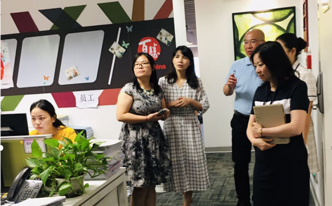 老师们受到了百胜中国员工们的热烈欢迎。在财务运营总监王静、人力资源总监易华、人力资源经理向朝军、主管魏然、招聘主管苏晓的陪同下,老师们参观了财务共享中心、人力资源共享中心,并开展了交流座谈。