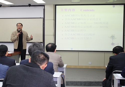 孙教授主要从AACSB国际认证的发展历程、认证意义、认证标准、认证程序、认证关键点等几个方面对AACSB国际认证做了全面详细的介绍。重点阐述了AACSB国际认证对学校、学生、教师、雇主和合作伙伴的利弊方面影响,强调了获得AACSB国际认证的重大意义。