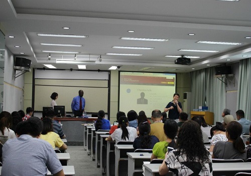 讲座的一开始,Sally教授主要通过介绍了新泽西理工学院的有关发展历程以及最近学术研究方向,并详细介绍了其管理学院的教学模式以及有关研究实验室的信息,也展示了学生参赛的获奖照片、成功校友成就。他说:“他们学院希望可以通过这种方式,诚邀世界各地学生前去留学。这对学校的全方面发展是非常有利的。”