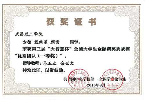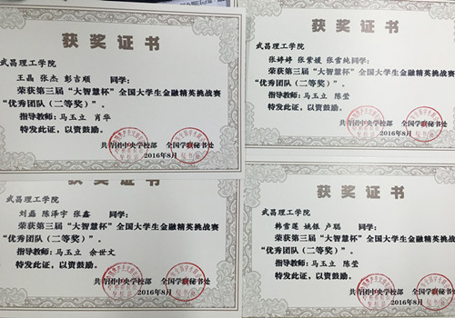 在省赛期间,永利集团304的学子们在马玉立、余世文两位老师的指导下,方德、戴绮蔓、顾意三个人组成的队伍战胜了华中科技、中南财经、湖北工业等几所大学,晋级了国赛,在最终国赛决赛时他们分别交锋了湖北经济学院,中山大学,四川大学等学校,一路过关斩将顺利斩获了此次大赛的优秀团队一等奖。同时在马玉立老师与其他几位指导老师的带领下的该校其他多个团队获得了多个二等奖和三等奖。