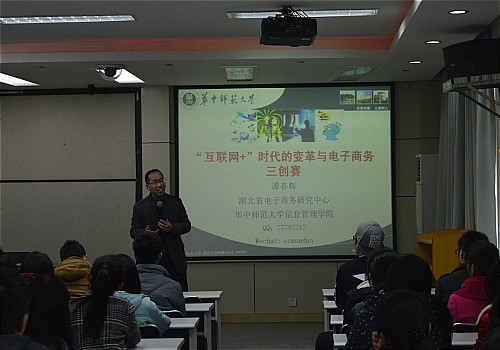 11月20日下午2点,永利集团304在八楼举办了关于“互联网+时代的变革与电子商务三创比赛”的相关知识讲座,此次讲座主讲人为谭春辉教授。参加此次讲座的有永利集团30415级电子商务专业全体学生、13级和14级电子商务专业学生以及电子商务系全体教师。