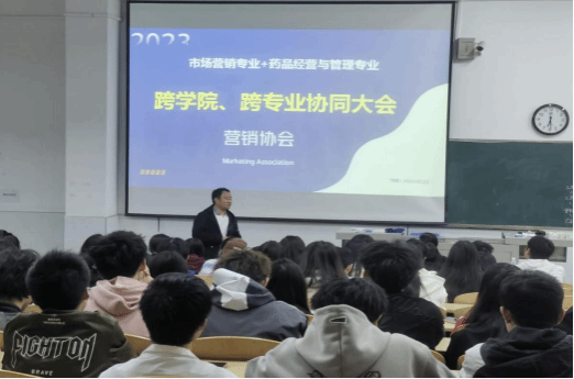 会上李主任对构建多维组群协同育人模式做了阐述。跨学科多维组群协同育人是通过整合不同学科的师生及专业资源,实现优势互补,为协同组群内的教师提供跨学科的学习、交流、协同科研教研的途径,为组群内的学生提供多种交叉学科的全新视野及不同思维模式的碰撞与多维协作创新,培养全视角的复合型人才。具体实施规划,一是跨专业,构建协同育人的新模式;二是跨学院,构建多元专业组群协同创新机制;三是跨地区跨学校,创新构建复合型人才协同培养平台。此次以市场营销协会与药品经营与管理专业建设专业协同组群为契机,展开协同发展探索。会上,李主任鼓励两个专业的同学深入交流,积极在更大的平台上,拓展视野,整合优势资源,协同创新,从而实现双向的共享、共创、共赢。