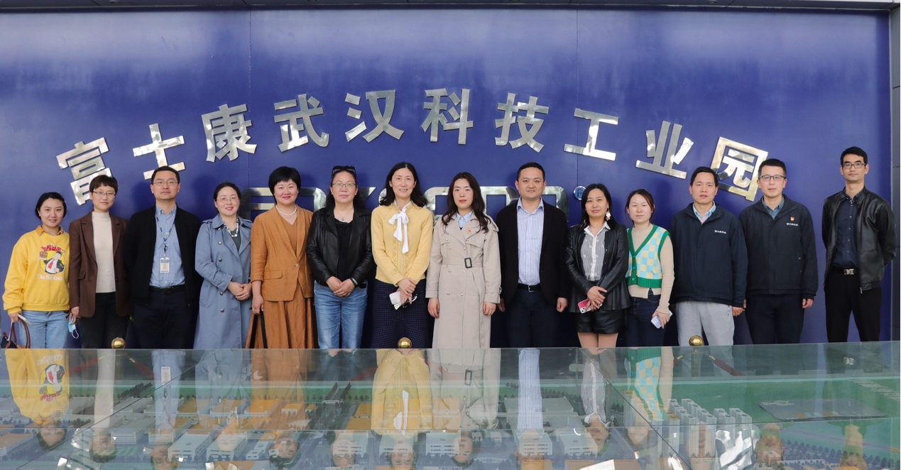 武汉富士康园区党委书记贾碧倩详细向考察团成员介绍了武汉富士康园区基本概况,通过视频专题片展示工会组织推进武汉富士康和谐园区建设,并带领考察团成员深入富士康科技集团武汉园区,了解一线厂区生产情况,参观园区生产线,与创新技术中心主任在工业互联网、智能制造发展方面进行了深入探讨,了解到富士康企业在商科用人方面的需求。