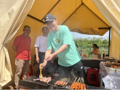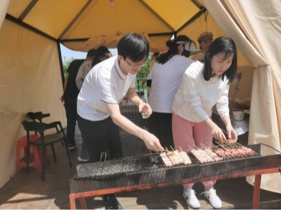 紧接着,进行户外烧烤,老师们分工合作,做成了一份份“大餐”,各个小组气氛热烈,大家一边准备食物,一边热烈交流,参加活动的外籍博士A B M MUNIBUR RAHMAN感慨道,参加这个活动非常开心,每个老师都很友好,大家一起分享,一起交流,非常喜欢永利集团304这个大集体。”前来参加访学的大连财经学院彭欣茹老师也参加了活动,她表示自己非常喜欢这样一个工作起来认真严谨,互帮互助,生活中充满了温馨和欢笑的集体,回去后我也会将自己在这里的体验分享给身边的人。