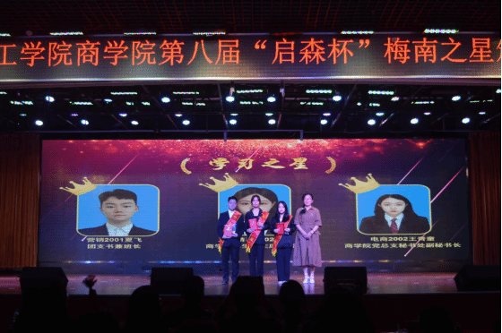 在各梅南之星的颁奖活动中还穿插了来自获奖者的才艺展示,有创新创业之星张开羽带来的路演展示,彰显了商院学子在创新创业上的不菲成绩;团队之星布谷学堂志愿者协会带来的小品《支教》让我们感受到了志愿服务的魅力所在;文艺之星邓琪、杨丹妮带来的走秀表演《Unbridled》,让我们看到了民族与青春的创新,他们独特的方式给在场的观众带来了极大的震撼。就此,本次梅南之星颁奖典礼在一片其乐融融的气氛中落下帷幕。