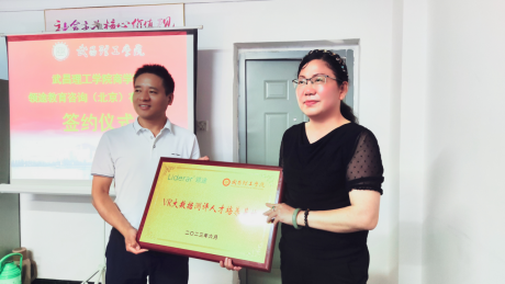 研讨会后,双方签订了初步合作协议,沈院长为刘总颁发我院企业导师的聘书,刘总为我院授予“VR大数据测评人才培养基地”的挂牌。