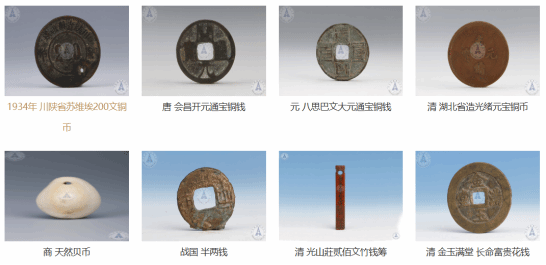 博物馆中藏有遥远的新石器时代的贝币、骨币,春秋战国至近代的布币、铁币、铜币、银币、金币、纸币;有早年发现的各类古代铸币,也有近年出土的荆楚铸币;有历代形形色色的中央铸币,也有多采多姿的地方性铸币。