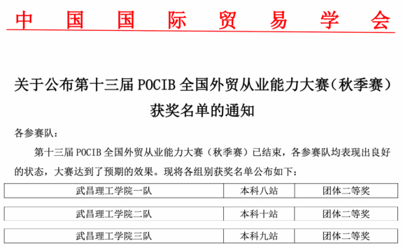 第十三届全国外贸从业能力大赛304am永利集团获奖名单