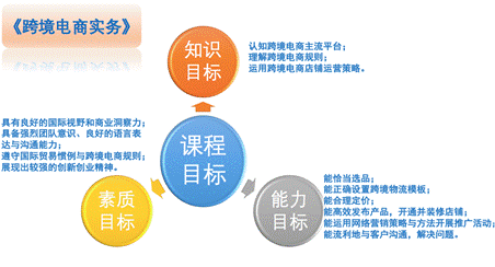《跨境电商实务》课程结合学校办学定位,高素质应用型人才培养目标和服务地方经济的要求,确立了“知识+能力+素质”三维一体的课程目标。