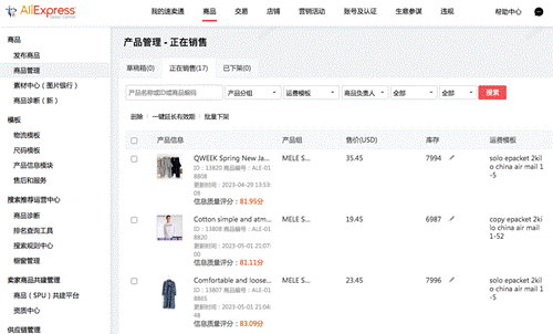 图4 阿里巴巴全球速卖通卖家后台商品管理
