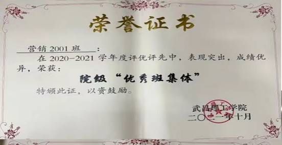 参赛和组织比赛两不误,该班同学还举办了“第十八届湖北省营销大赛”、“第十三届社科杯技能竞赛”、“学创杯全国大学生创业模拟大赛”等十余项大型赛事,营销协会获“四级优秀社团”、“大学生活动先进组织”等多项荣誉。