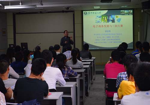 5月16日下午2点,讲座准时在永利集团304八楼录播室开始。谭教授紧紧围绕电子商务变革与“三创”比赛,系统讲述了电子商务商业模式的发展、电子商务创业策划的要求以及全国三创比赛的情况等。首先,谭教授历次科技革命、电子商务发展历程,使同学们初步的了解了电子商务。然后谭教授就以实际生活中一些网站为例,讲述了电子商务的各种模式,比如B2B模式的阿里巴巴、B2C模式的天猫、C2C模式的淘宝网等,为实现客户价值最大化,把能使企业运行的内外各要素整合起来,形成一个完整的高效率的具有独特核心竞争力的运行系统,并通过最优实现形式满足客户需求、实现客户价值,同时使企业达成持续赢利的目标。紧接着谭教授分享了时下盛行的电子商务整合营销推广的方法,包括QQ推广、微信推广、微博推广、博客推广、论坛推广、社区推广等的线上推广方式和平面宣传、特色公益活动推广的线下推广方式,并且谭教授告诉同学们要综合运用这些方式,达到整体的最优目标。接下来,谭教授结合专业化、融合化、本地化、社会化、智能化、个性化、生态化、知识化、创新化、法制化等电子商务的十大发展趋势,以及他总结的电子商务“三创赛”策划书的禁忌,包括切忌全盘照抄、切忌数据过旧、切忌内容不全、切忌表述不一、切忌数据错误、切忌说教指点、切忌排版错误等,并条分缕析、举例说明,指导参赛选手写出更好的商业策划书。最后,谭教授分享了他自己多次指导电子商务大赛的备赛心得,包括:学生要踊跃参与,参与才有机会,参与才能成功;学校要高度重视,提供人、财、物的支持;老师要全心投入,积极指导学生,共同探讨方案:选题要切实可行,围绕大赛主题,立足网络环境,拓展选题视野,兼顾两个效益;方案要有的放矢,基本要素应具备,创新之处要突出;团队组成要合理,能写会说有技术,这样的团队最牢固;要积极参加培训,通过培训,学习以前成功的经验,诊断当前方案的不足,多角度、全方位完善方案;赛前绝不放松,赛前模拟演练,竞猜评委提问,做到心中有数;细节决定成败,要注意谈吐言行、衣着服饰。