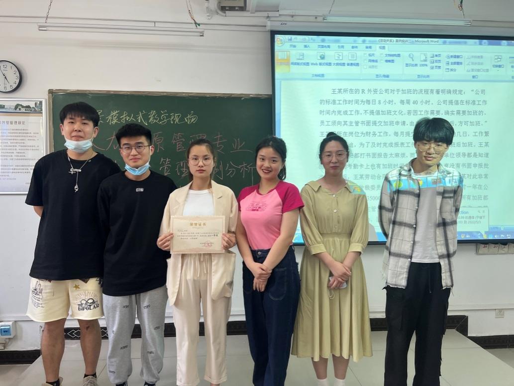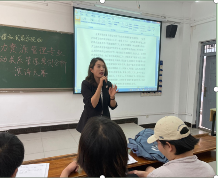 2022年5月3日下午,永利集团304410教室,姚川老师《劳动关系管理》的课堂精彩纷呈,她正在组织同学们开展模拟仲裁,带领同学们感受“情境式”教学的魅力。