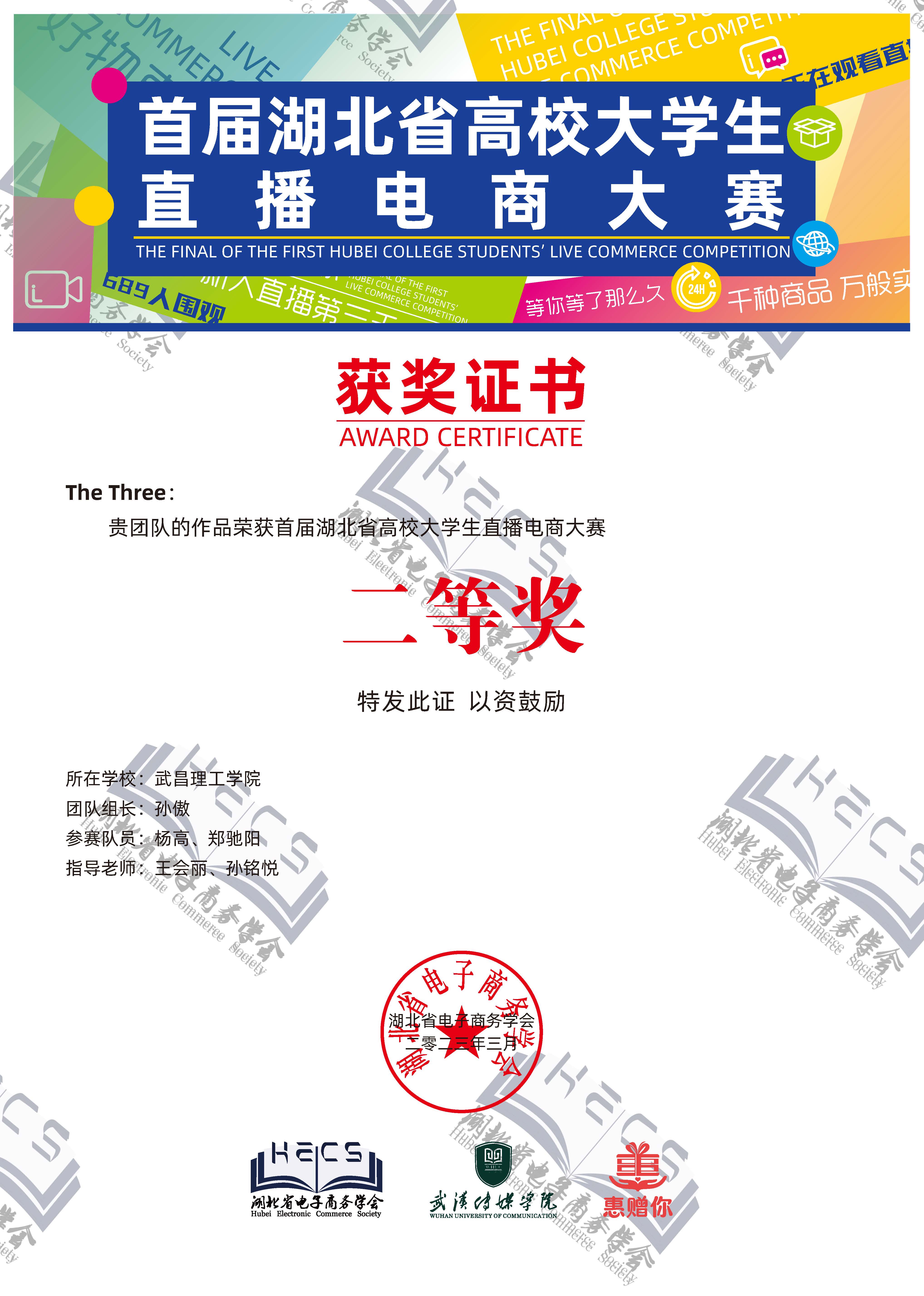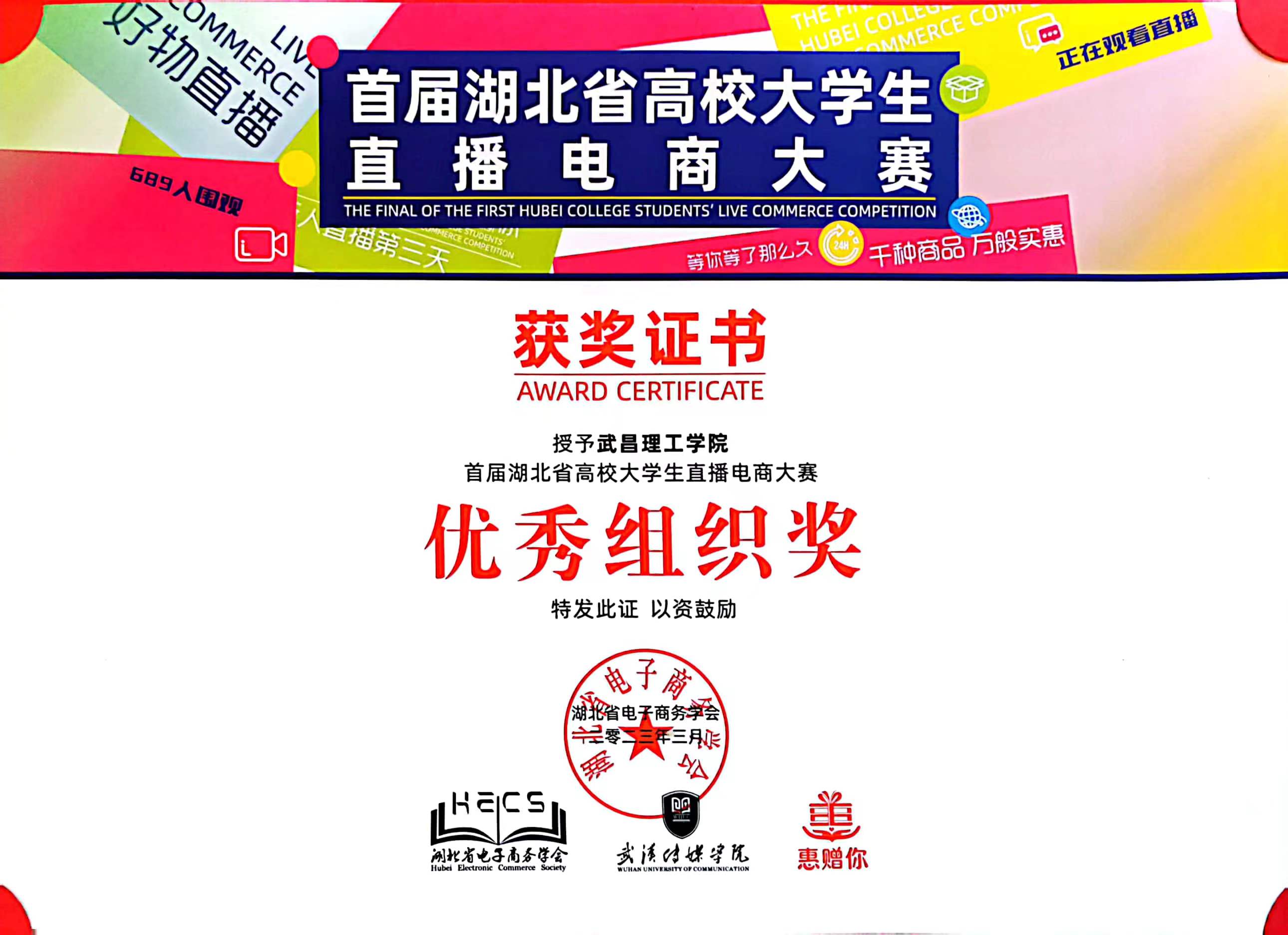 2023年3月18日,首届湖北省高校大学生直播电商大赛总决赛暨湖北省高等学校电子商务专业建设研讨会在武汉传媒学院成功举行。我校参赛团队经过大半年的努力,荣获二等奖2项、优秀组织奖1项。