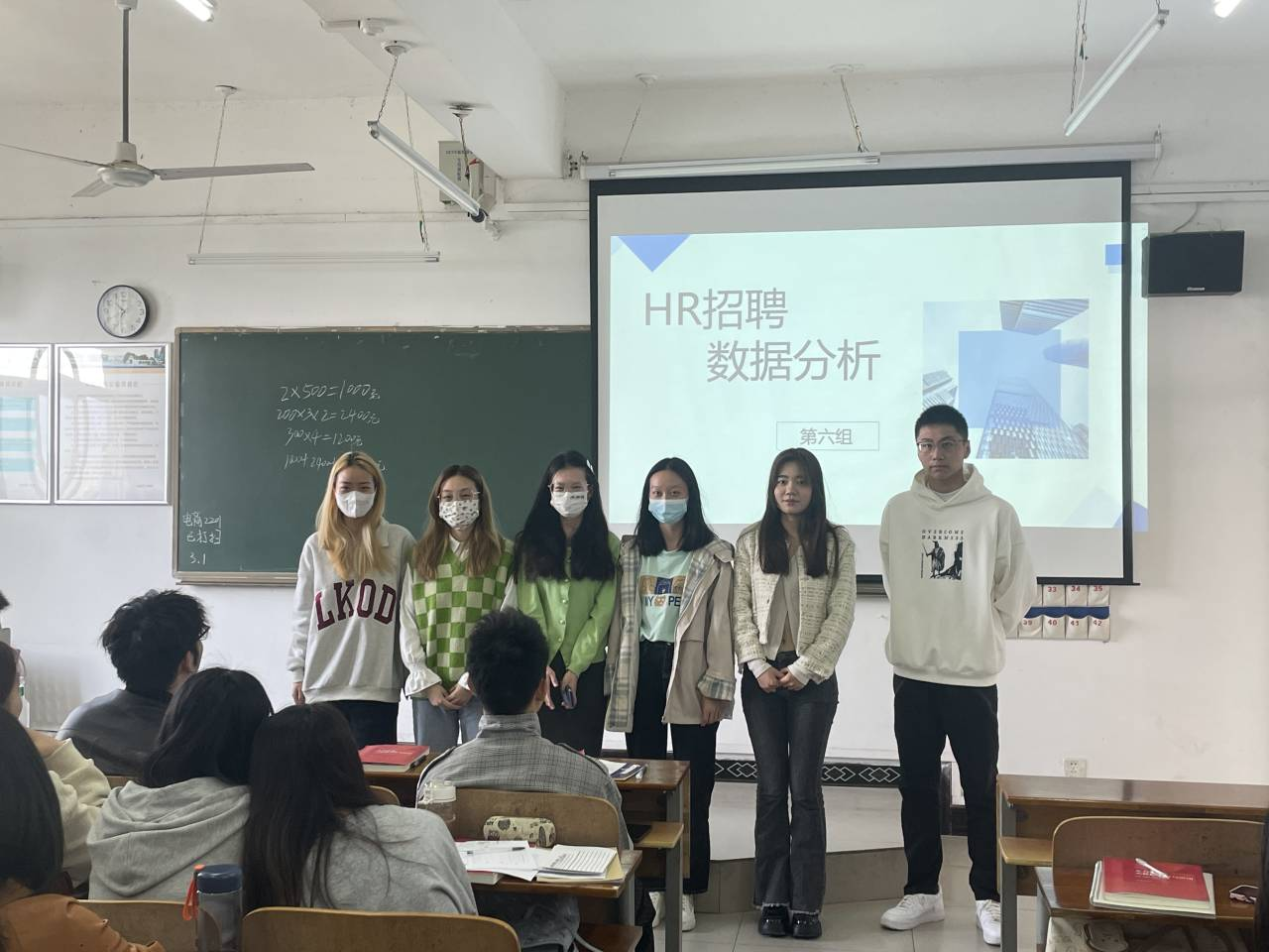 3月15日,人资2001班42名学生组成的6个研究团队,对人力资源大数据分析调查报告进行了课程汇报。