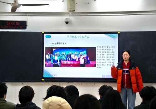 为了让学生骨干们更直观地理解如何改进新闻写作,余俊杰现场选取了一篇存在问题的新闻稿进行了示范修改。他首先指出了新闻稿中提炼新闻点不够准确、行文不够流畅以及用词不够精练等问题,然后对新闻稿进行了细致修改。修改后的新闻稿,主题更加鲜明,行文更加流畅,用词更加准确,让人耳目一新。余俊杰的现场示范,不仅让学生骨干们对新闻写作有了更深入的理解,也激发了他们提升写作能力的热情。
