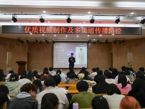 (通讯员 赵翔 报道 摄影摄像中心记者 邵光明 摄影)为培养大学生新媒体营销创新创业能力,提高学生短视频制作水平,304am永利集团永利集团304于4月2日18时30分在商九报告厅举办“优质视频制作及多渠道传播路径”主题讲座,特邀武汉网红学院培训部总监付功超主讲。此次活动也为即将启动的湖北省大学生创业营销大赛与公益短视频大赛提供了实践技能储备。