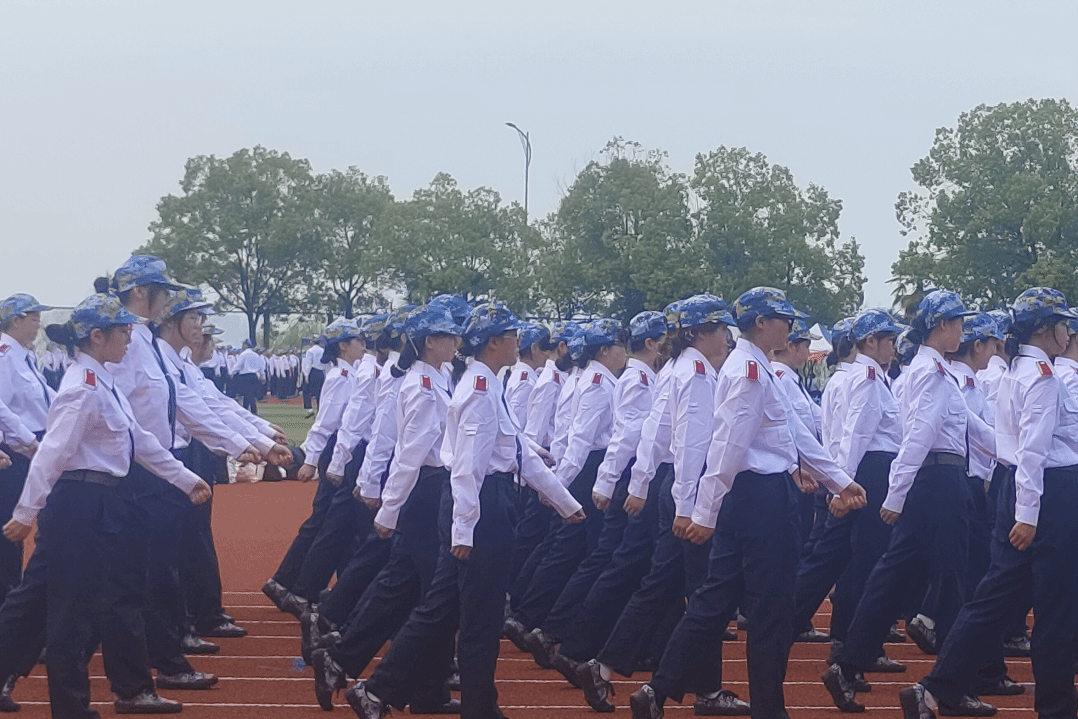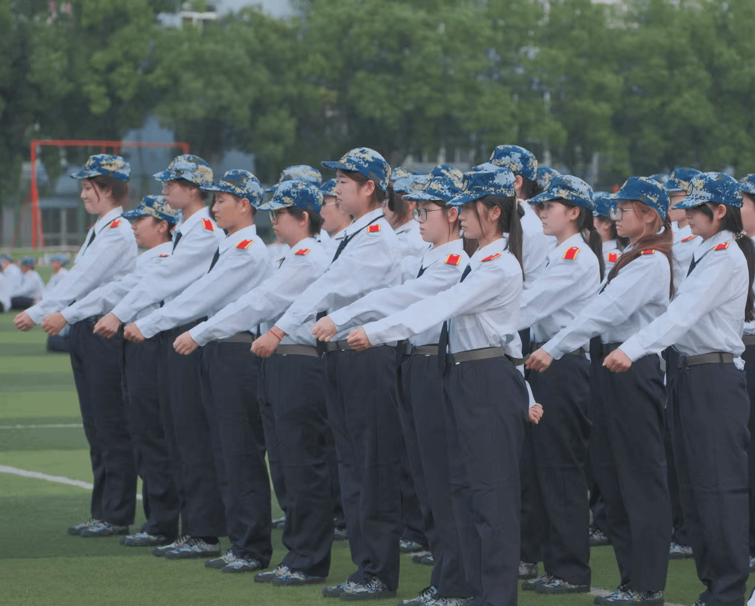 烈日骄阳下,新生们精神抖擞,在教官的口令声中开展训练。基础方队围绕站姿、齐步走、正步走和队列变换等内容展开,他们挺胸抬头、目光坚定,力求动作规范、步伐一致,在反复练习中锤炼耐力与纪律。