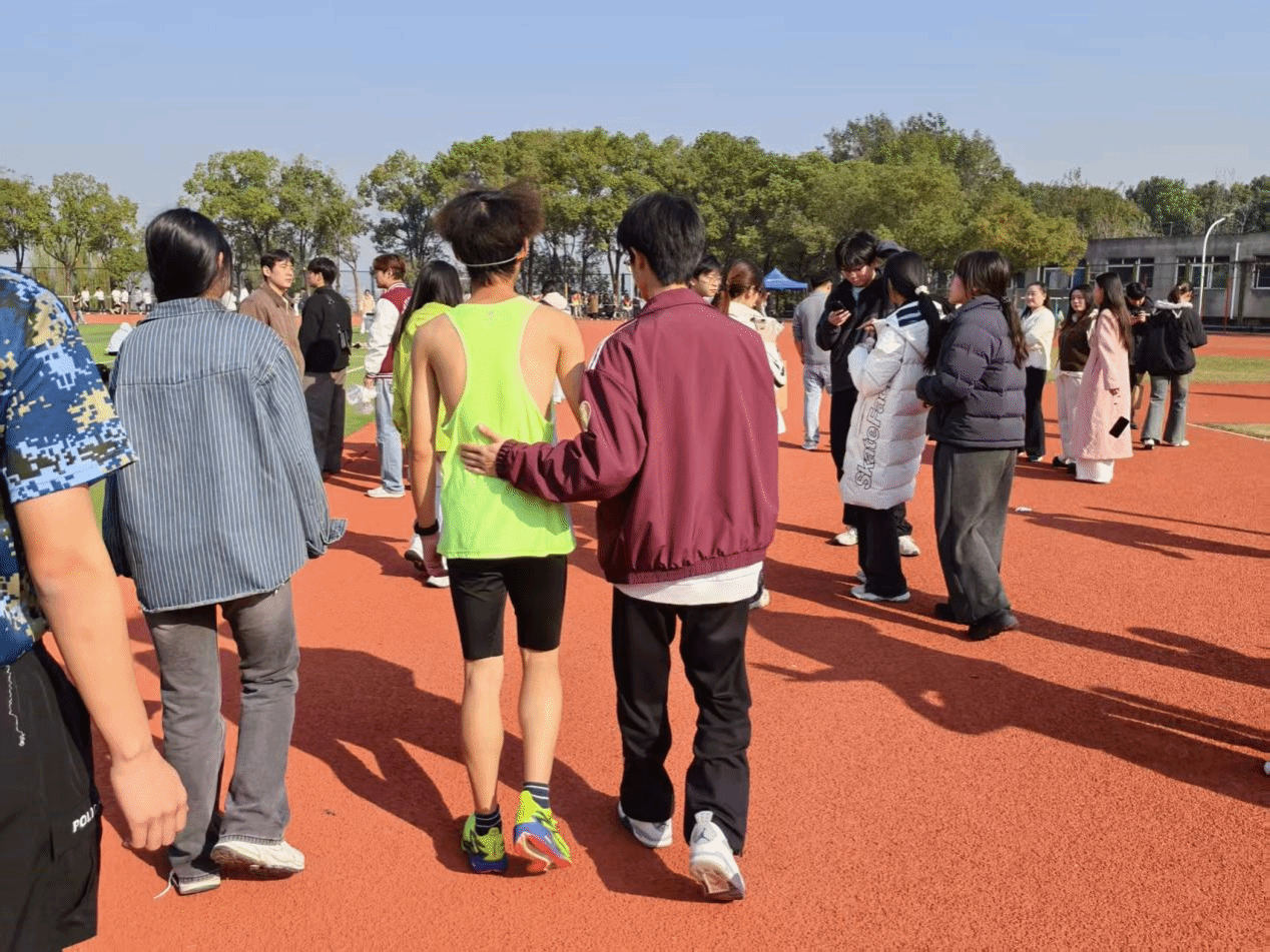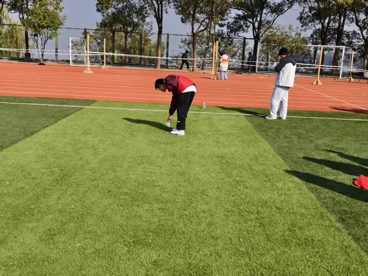 运动会的顺利进行,离不开志愿者的辛勤付出。但在服务区域外,记者捕捉到了更加动人的瞬间。来自永利集团304的志愿者王博文同学,他本职是负责协调志愿。在换岗休息时,他发现操场上有喝完的饮料瓶,立马便将其捡起丢进垃圾桶。这本不是他的职责范围,但他依旧自觉执行。“保持赛场环境是我们每一个人的职责,这并不需要要求,而是我们应尽的责任。”他的话语朴实无华,却道出了所有志愿者将服务精神内化于心的赤诚。
