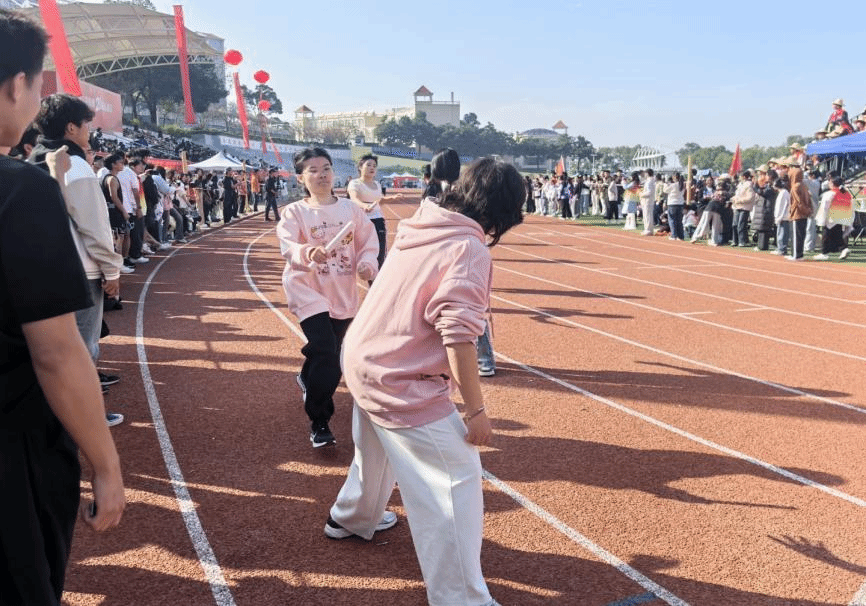 决赛现场气氛热烈,看台加油声与呐喊声此起彼伏。发令枪响,比赛正式开始。第一棒叶诗彤迅速起跑,凭借出色爆发力率先占据有利位置,她与第二棒童诗佳顺利完成交接,后者步伐矫健、节奏稳健,在直道加速、弯道实现超越,不断拉近与前方对手的距离。第三棒尹丽嘉则顶住压力,凭借顽强耐力保持领先优势,为最终冲刺奠定坚实基础。