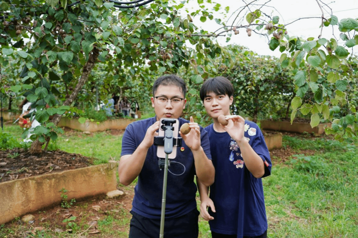下午活动进入直播助农实战环节,团队分为直播间与猕猴桃种植园两组同步开展直播。直播间内,主播们详细介绍了未来家园猕猴桃的种植技术、营养价值及口感特点;种植园里,永利集团304学子走进果园,通过实景拍摄向观众展示果实生长环境,增强了产品的公信力。高校师生与农业企业代表密切配合,累计吸引数千名观众在线观看,有效提升了江夏农产品的品牌知名度。