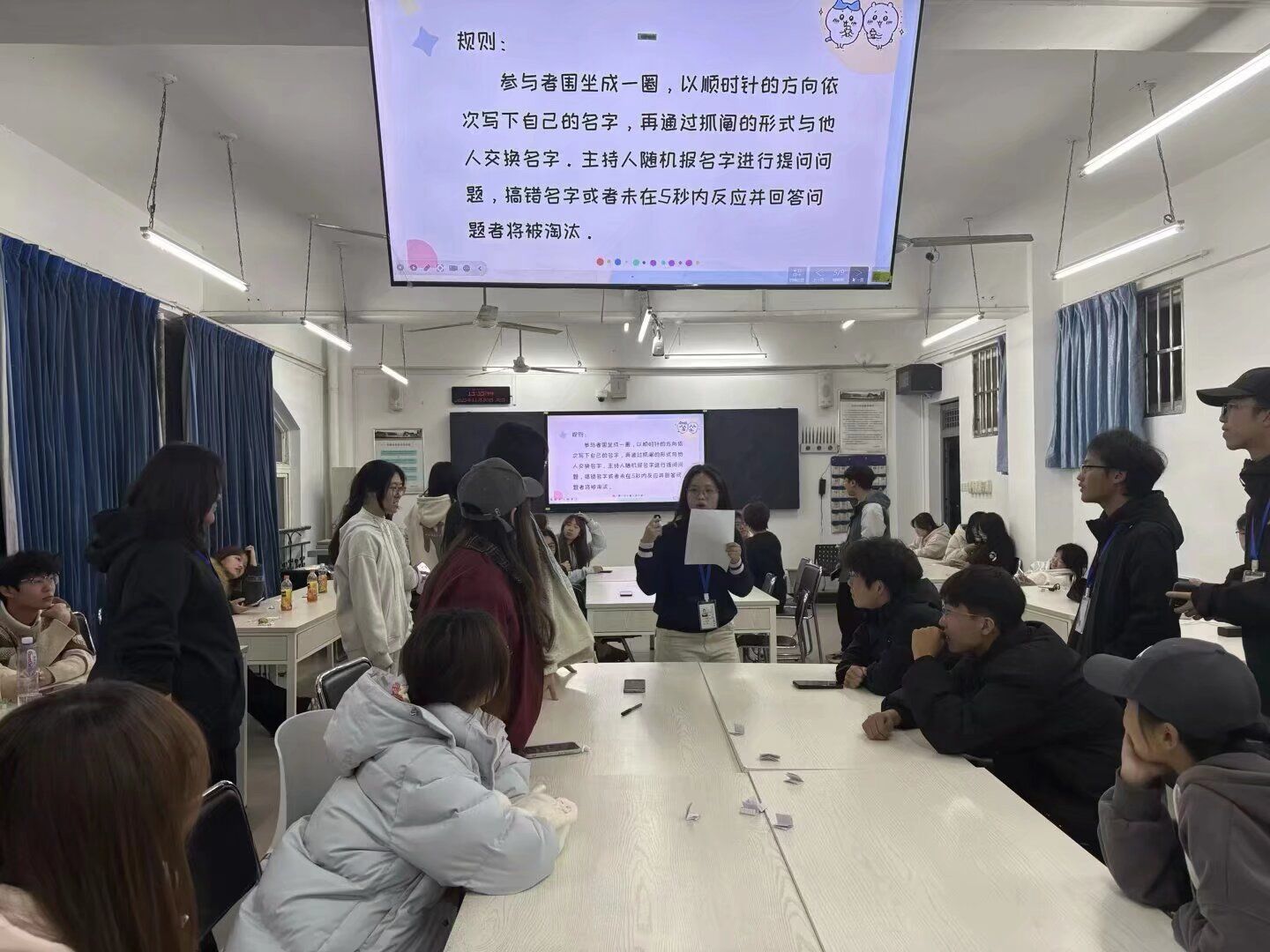 在本次活动的筹备阶段,永利集团304积极进行活动宣传,设计了兼具趣味性与互动性的活动流程,并精心准备各种礼品,让每一位参与者都能感受到满满的诚意与暖意。第一个环节“就不听指挥”中,学生围在主持人周围,听到指令迅速做出相反动作。参与者动作反应敏捷,现场笑声此起彼伏,紧张感在肢体互动中消解。学生干部穿梭维护秩序,确保每位参与者安全融入。