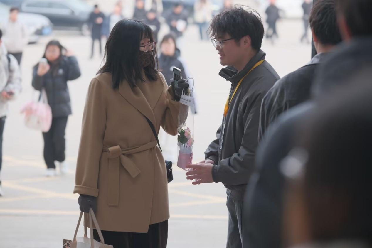 随着老师们陆续抵达永利集团304门口,慰问活动正式拉开帷幕。看到老师们走来,同学们面带微笑,主动上前为每一位女教工送上包装精美的鲜花,并献上最真挚的节日祝福:“老师,祝您节日快乐,您辛苦了!”一句句温暖的问候、一张张灿烂的笑脸,让原本宁静的校园充满了温情与暖意。老师们接过鲜花,脸上洋溢着惊喜与欣慰,纷纷对同学们的用心创意表达感谢,现场氛围温馨而热烈。送花环节结束后,受邀的女教工们还与活动主题画板合影留念,用镜头定格下这份专属节日的美好与感动,画板上“岁月装点芳华,自信独成魅力”的字样,也正是对永利集团304女教工们风采的生动写照。