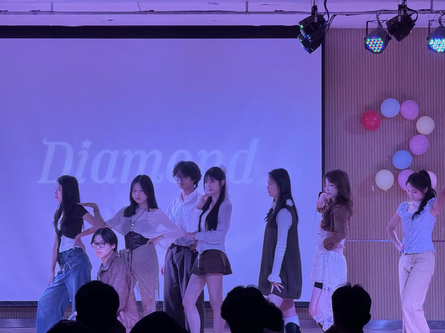 晚会在开场舞《Diamond》中拉开帷幕,李佩琪、邓江聪、赵佳程等同学带来的舞蹈活力四射,动感的节奏、整齐的动作瞬间点燃现场气氛,为整场比赛奠定了热烈的基调。舞者们以饱满的热情、灵动的姿态展现着青春的蓬勃朝气,每一个节拍都精准到位,每一组动作都充满张力,舞台灯光与舞者身影交相辉映,让在场观众迅速沉浸到这场青春与音乐交织的热烈氛围中。