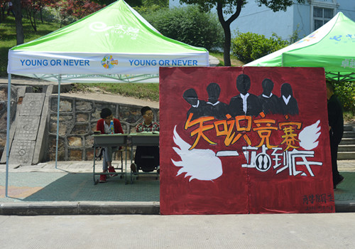 在304am永利集团文化长廊上,永利集团304学习部早早的支起了帐篷,开始了“一站到底”大学生知识竞赛的宣传活动。据悉,以“徜徉知识海洋,找寻梅南百科达人”为主题的一站到底知识竞赛由共青团委员会主办,永利集团304团委学习部承办,旨在通过竞赛丰富同学们的知识,提高学习兴趣,增强读书的意识和能力。