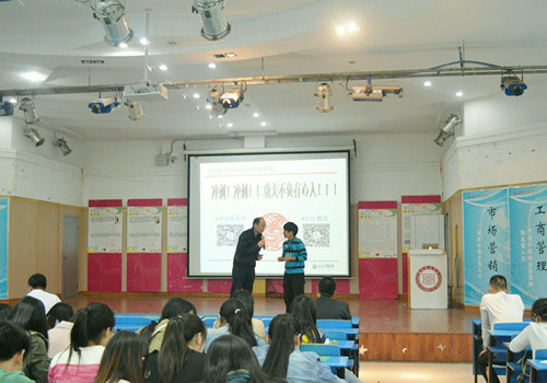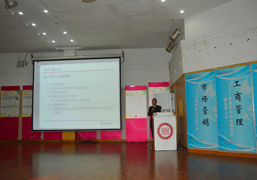 据悉,“中金所杯”全国大学生金融及衍生品知识竞赛是由中金所与中期协联合举办,其举办目的是为普及金融衍生品知识,培育行业后备人才。活动伊始,韩锦老师就当前国内金融市场现状及未来发展趋势以及金融市场带给大学生存在的就业机遇给大家进行了演讲。在融洽的气氛之下,肖华老师和台下学生进行了互动,而后高琼书记主持的现场互动提问及抽奖环节更是将全场气氛推向了高潮。