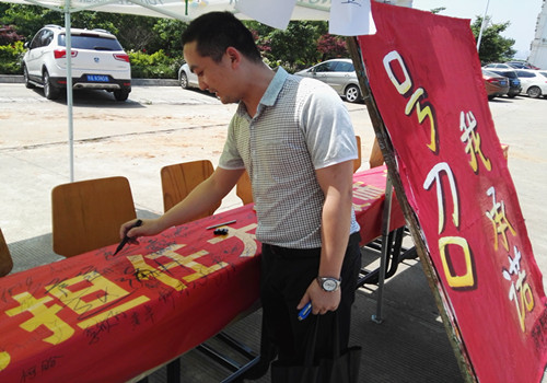 整个签名现场,人头攒动,无数永利集团304学子在印有文明口号的横幅上签名承诺。与此同时永利集团304领导,教师也积极参与其中,共同响应校园文明建设,为创建文明、和谐、卫生的校园环境做出表率。仅仅半天时间,就有近千人师生参与活动之中,在横幅上签上自己的名字,做出文明承诺。永利集团304会计1401班的郭睿说道:“今天和室友一起在横幅上签名了,很开心能够参加这样一次有意义的活动,将承诺书写在横幅上也书写在我们的心中,真正做到文明承诺,做文明大学生。并且我们也鼓动了班级同学一起参与进来。”
