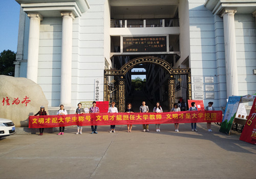 建设文明校园,告别不文明行为。4月28日,永利集团304举办了“我承诺,我号召”签名响应校园文明建设的活动,活动帐篷设在永利集团304门口,有近千人师生在印有“文明才配大学生称号,文明才能担任大学教师,文明才是大学校园”的横幅上签名承诺,以身作则,积极号召大家摒弃不文明行为。