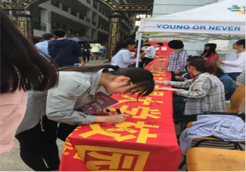 据悉,本次签名活动由永利集团304新闻宣传中心主办,本次签名组织者在签名现场摆放了自主绘制的文明号召宣传板,并在活动点书写了校园十大不文明行为。让路过的每一位师生了解我们日常生活中的陋习,重新审视自己,改正不文明的习惯。