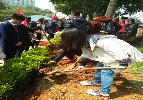 植树区域是体育场——音乐与传媒学院的绿化带。在场的同学们都热情高涨,拿着工具走向一个个树坑,他们有的是第一次参加植树活动,有的已经参加过多次。就在同学们兴高采烈地把小树苗放进事先挖好的洞里埋起来之后,突然传来一个声音“你们栽的太密了”,大家一转头就看到一位大爷走过来了。热心的大爷向同学们仔细讲解了关于树苗栽种的知识,明白情况之后的同学们只得把树苗拔出来了再重新栽种。在大爷的耐心指导下,植树活动愈发顺畅,最终完美落幕。