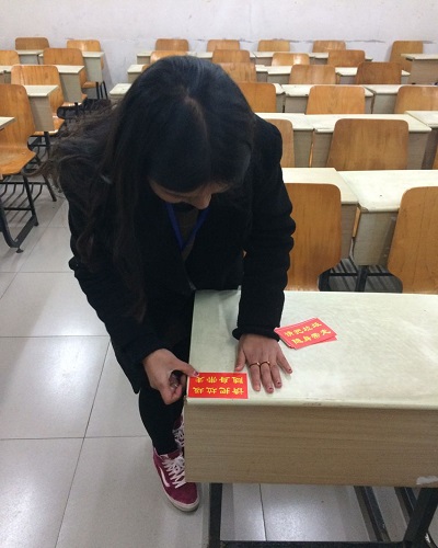 叶校恒告诉记者,“由于少部分人的不自觉或缺乏爱护公物的意识,很多教室的课桌都遭到了或多或少的‘残害’,主要是写字或涂鸦,随手上课携带的垃圾也不自觉的留下,我们希望通过这个活动,还大家一个上课的好心情,也帮助大家养成好习惯。”通过这次活动,教学楼的课桌焕然一新,每间教室也被贴上了“请随手带走垃圾”的提示语,以提示大家爱护课桌。同时,为禁止零食早餐进入教室,永利集团304特地安排了党员同志严查,每天早上都会有党员值班,在门口监督,进教室查看,执行力度大,乱丢垃圾的现象也得到了明显的改善。