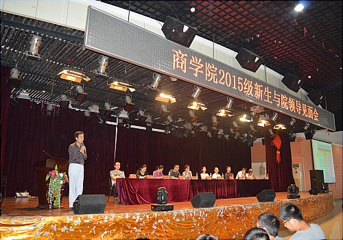 在主持人的主持下,韩德明院长首先为2015级新生进行了一场简短的讲演。将永利集团304的专业和师资配置等信息向新生们一一介绍,赢得了在座的商院新生阵阵喝彩。随后王煊副院长提倡新生们要快乐学习,虽然学习是辛苦的,但是要学会苦中作乐。“快乐生活,我能行!”这句口号得到了新生们的热烈欢迎。在王煊副院长的风趣讲演中新生们也对自己即将开始的大学生活充满了期待。