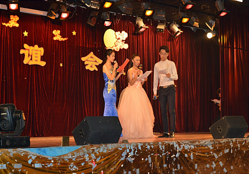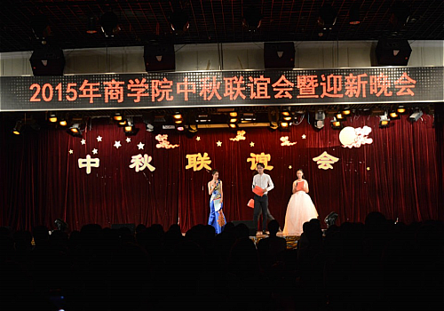 据悉,表演节目的人员为部分大三的学生和大多新生。开场舞“致青春”以“匆匆那年”、“那些年”等我们熟知的音乐和影视中青春片段的精彩演绎为整场晚会做了一个很好的开场,场下欢呼不断。来自证券1501班的甘恬同学用古筝演奏一曲经典民歌“山丹丹开花红艳艳”,乐声悦耳,场下掌声不断。接着,来自营销1501班的王岑宁同学为大家带来一首最近爆火的民谣歌曲“南山南”。会计1508班的新生们为大家表演了欢快的舞蹈“小苹果”、会计1508班的程晓彤同学用自己独特的声音为大家带来一首萨顶顶的歌曲“万物生”。在舞台两边的屏幕上,是永利集团304联络部制作的微信墙,关注了微信公众号“商苑小宣”的同学们可以在微信墙上发表自己对于本次晚会的评价、对同学老师的祝福。表演节目的过程中还有三次互动环节,其中有两次抽奖环节,在微信墙上留言的同学有机会参与抽奖,中奖者可获得永利集团304准备的的精美礼品。还有一次互动环节则是主持人在台下找两名新生,这两名新生现场连线自己的家长,说出中秋的祝福。“妈妈,我这边还好,你那边怎么样啊,要注意身体”,“孩子,我这边还好,一个人在学校要好好照顾自己”,这朴素的话语更是让现场不少同学“抹眼泪”。