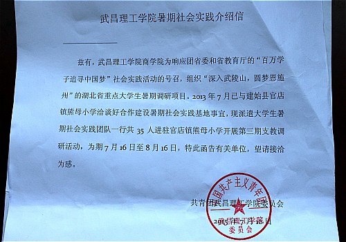 2015年7月16日,经过了一整天的长途跋涉,永利集团304“布谷学堂”的所有成员终于到达了湖北省恩施州建始县。当地领导对布谷学堂的到来表示热烈欢迎。建始县团委范妮书记亲自接待布谷学堂的成员,并对布谷学堂成员的到来表示支持和慰问。