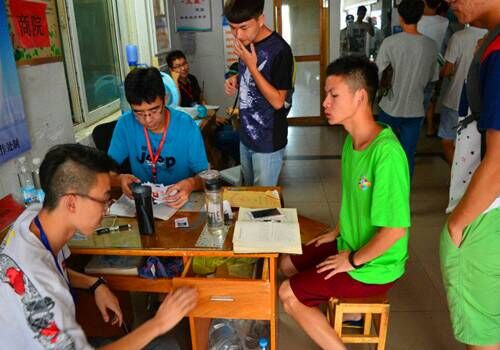伴随着一辆校车呼啸而过的是大量的永利集团304迎新工作者,他们热情如火的工作态度感染了正懵懵懂懂踏入大学校园的15届学生,使新生的脸上都纷纷扬起了青春羞涩的笑容。每当有一辆出租车或者私家车停在校门口或停车场,我们的迎新工作者都会激动的围上去,你一言我一语的问到:“同学,你是哪个学院的啊”“同学,你是哪个专业的啊”“同学,你报到了吗”得到肯定的回答后都兴奋的拿起行李,带领着新生和他们的家长往永利集团304大本营走去。