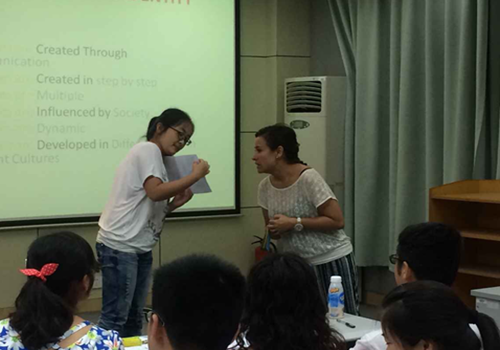近两天的时间,Alejandra Marin教授的课程赢得同学们不错的反响,也吸引了一批学弟学妹们来旁听。学生与教授热情地交流沟通学习,并与教授相约下午的活动继续交流。“外教虽然布置了一些我们以前可能从来没有接触过的任务与游戏,像昨天的寻宝任务,在户外拍照的过程中,虽然天气炎热,但我们每个人都会特别充满兴趣地去完成它。还有今天的‘college’活动,虽然昨天我花了很多时间,但是这整个过程让我很享受,使我充满乐趣,今天看到大家的‘college’作业,觉得大家都花费了很多心思在上面,真的是很享受这个课。不经意间我们就学到了课程所要传递给我们的信息。”来自国际商务特色班的张怡对记者说道