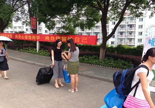 送别的氛围令人愉悦。驻扎的帐篷里堆放着成堆的矿泉水,向路过的毕业生免费发放。帐篷里的一条横绳上挂满了有着五彩绳环的小卡片,卡片上写着各种各样的祝福语。帐篷外还挂着用气球连成的彩虹桥。而在帐篷旁边,放置着以“栀子花开”为主题的画板。除了静态的美,还有动态的美。高琼书记、曾洁书记、孙华远老师与毕业生进行友好交流,谈笑风生。热心的学弟学妹们积极帮着略显疲惫的毕业生搬行李,在他们满头大汗时及时递上一瓶矿泉水。毕业生也将自己大学生活的经验教给学弟学妹们,让学弟学妹们的未来大学生活更丰富多彩。