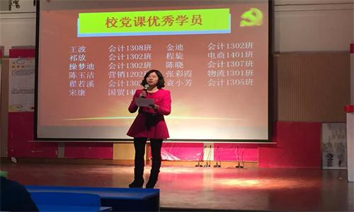 随后,来自会计专业的优秀学员代表金迪上台发言,金迪是第五小组的组长,她不仅详细阐述了自己参加此次培训的收获,还说明了自己通过此次党课发觉到团队协作力量的重要性。金迪说,此次党校课程虽然已经结束,但“我们对中国共产党的认识和追求并没有结束,将带着热情和执着不断学习党的知识”。
