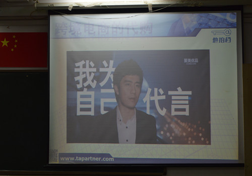 培训开始前,许飞讲师通过PPT上一个个精彩的事例向学生指明了当下跨境电商的发展形式。曾出现在大型相亲节目《非诚勿扰》的90后美女马佳佳,毅然故意考砸父亲安排的电视台笔试,朝跨境电商方面走起创业之路,如今已经成长为90后创业典范,最年轻的90后美女CEO。大家都熟悉的“超级课程表”,一款以课程表为基础而展开的校园社交软件,面向高校大学生,它的创始人余佳文,也是跨境电商海洋里的冲浪好手。如今的余佳文,更是获得了阿里巴巴数千万美元的风投。被我们熟知的电商巨头马云,当初以战略性的眼光选定了电商,从最初18个人凑齐的50万开始,一直到今天的成就,可以说马云促进了电商的发展,电商也成就了马云。