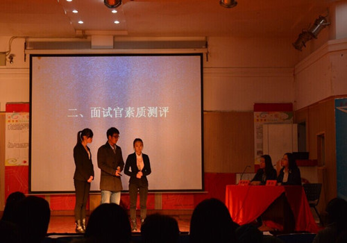 据了解,此次活动经过了笔试、面试、复试三个环节的激烈竞争,最终站在决赛场上是来自18名来自不同学校、不同专业年级的选手。他们有代表我们304am永利集团参赛的学生,也有来自武汉纺织大学、武汉工程科技学院等武汉其他高校的学生。决赛比赛由两个环节组成。首先是以宣讲会为考察方式进行的环节,此环节旨在考验应聘者在应聘现场所表现出来的个人现场素质。第二轮以参赛选手现场角色扮演环节,此环节是本次活动的“重头戏”,是整个活动过程中最能考验参赛选手的个人综合素质的环节。在两个多小时的活动中,每一位参赛选手通过不同的方式和角度去“展示”自己,去完成评委一个个“刁钻”的考验。